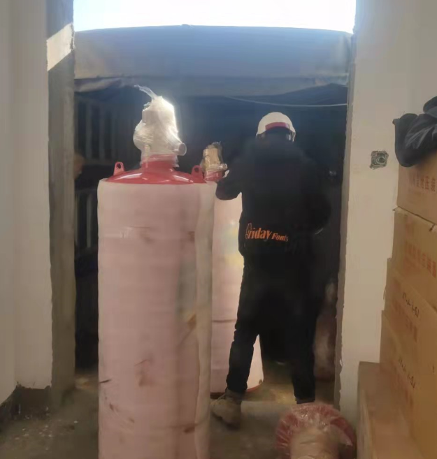 據(jù)現(xiàn)場(chǎng)工作人員介紹,由于現(xiàn)場(chǎng)環(huán)境和客戶要求,需要在現(xiàn)場(chǎng)進(jìn)行組裝、管線和噴頭需在場(chǎng)配置安裝,所以勝捷消防的安裝工作人員提前3天跟隨送貨貨車從成都出發(fā)趕往北票溫氏康寶屠宰深加工廠區(qū),加班加點(diǎn)的按時(shí)完成安裝任務(wù)。
